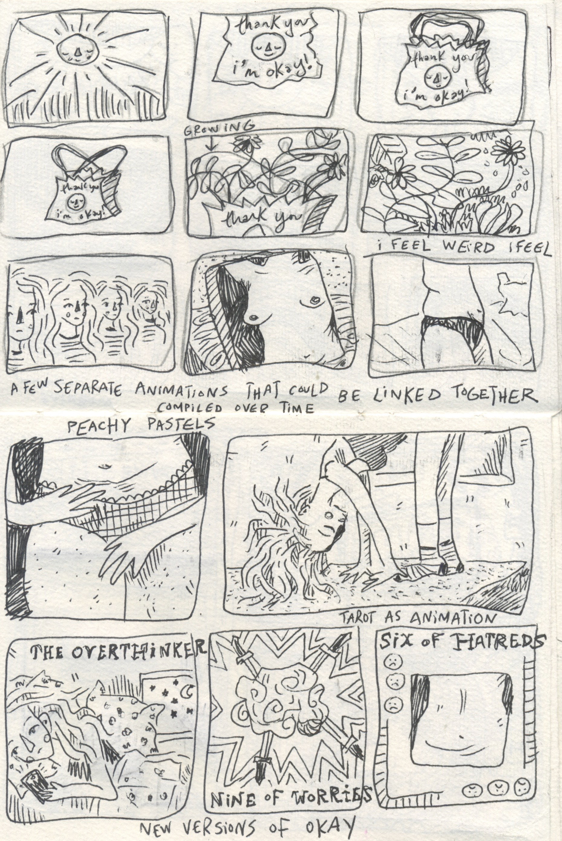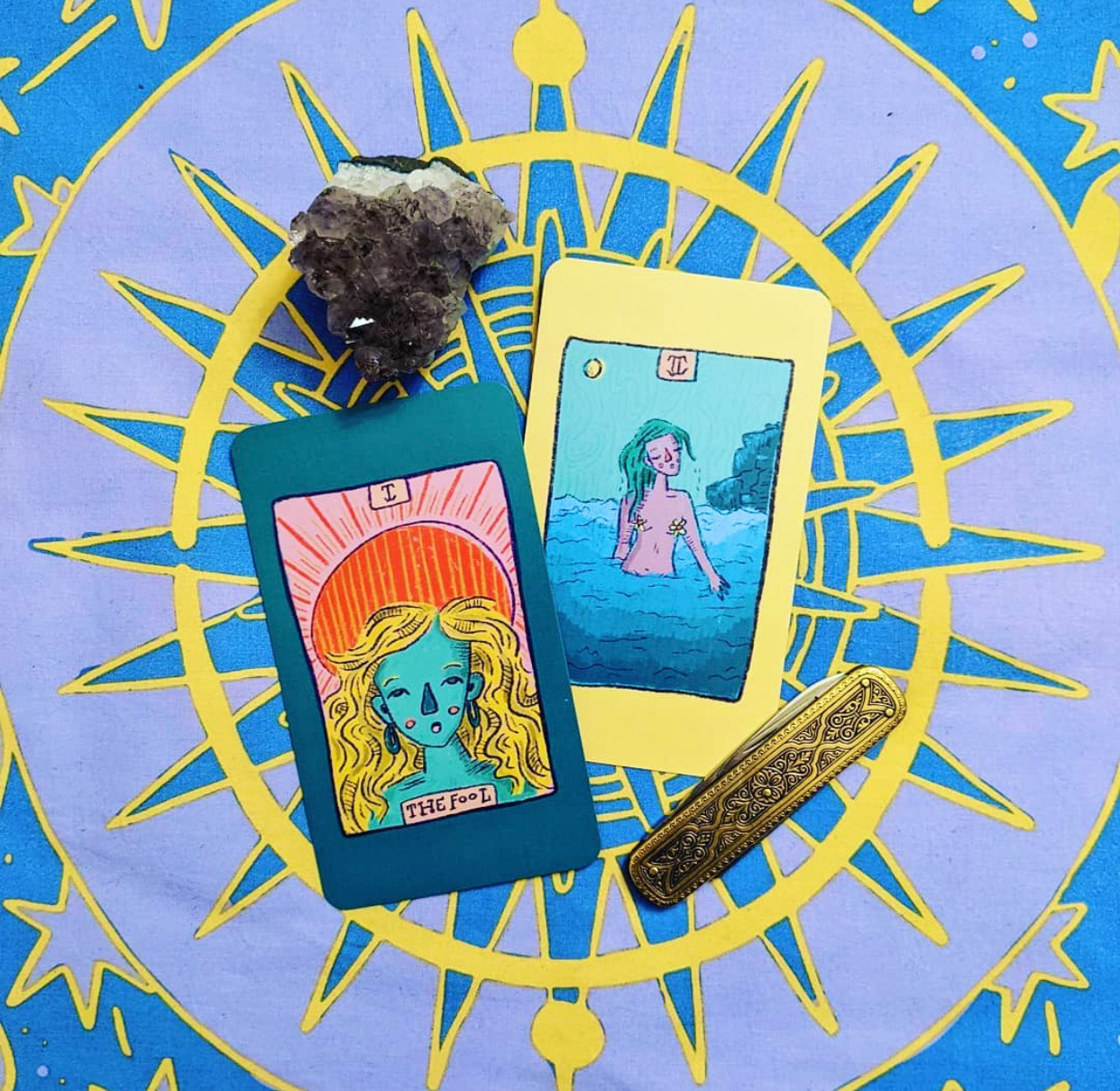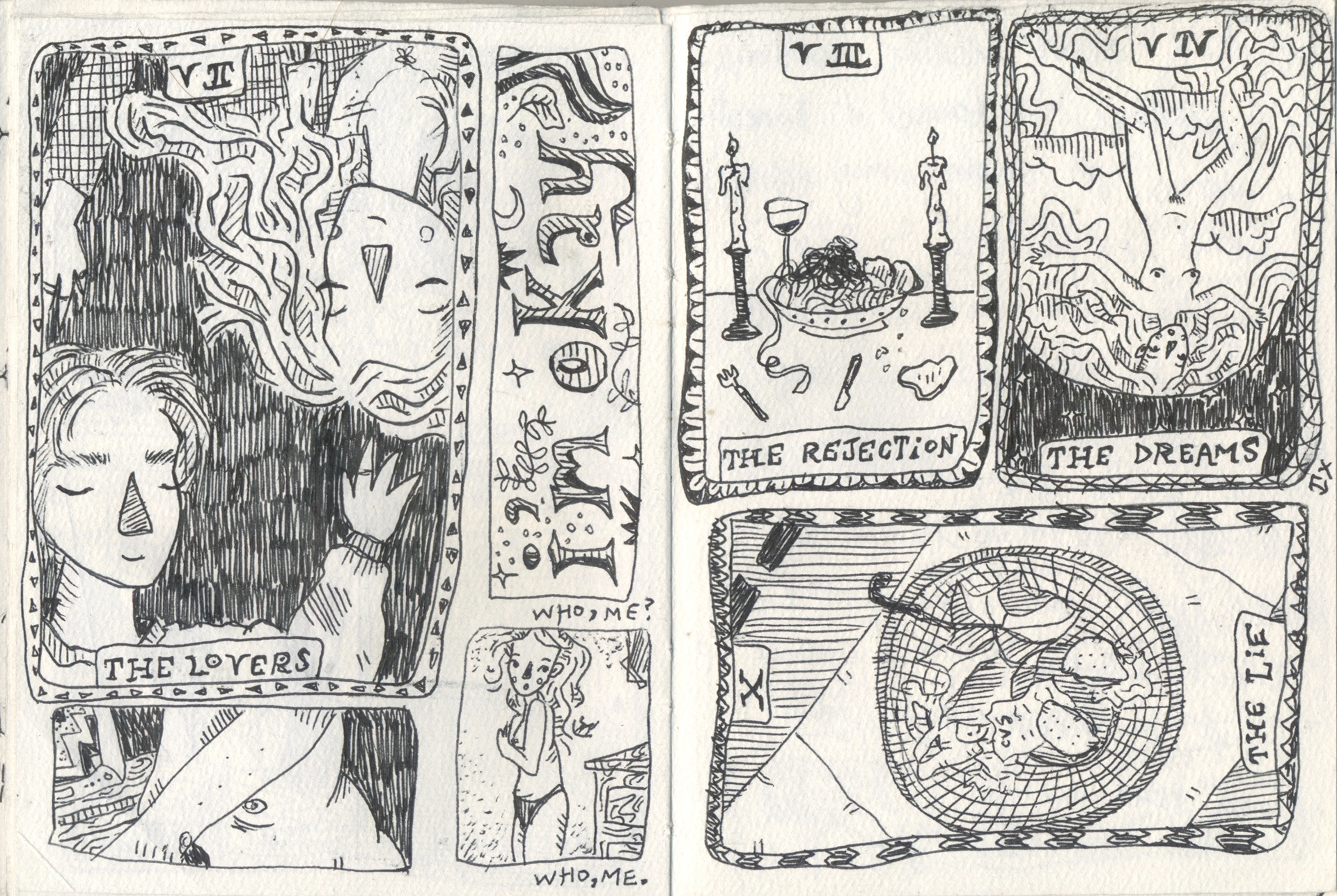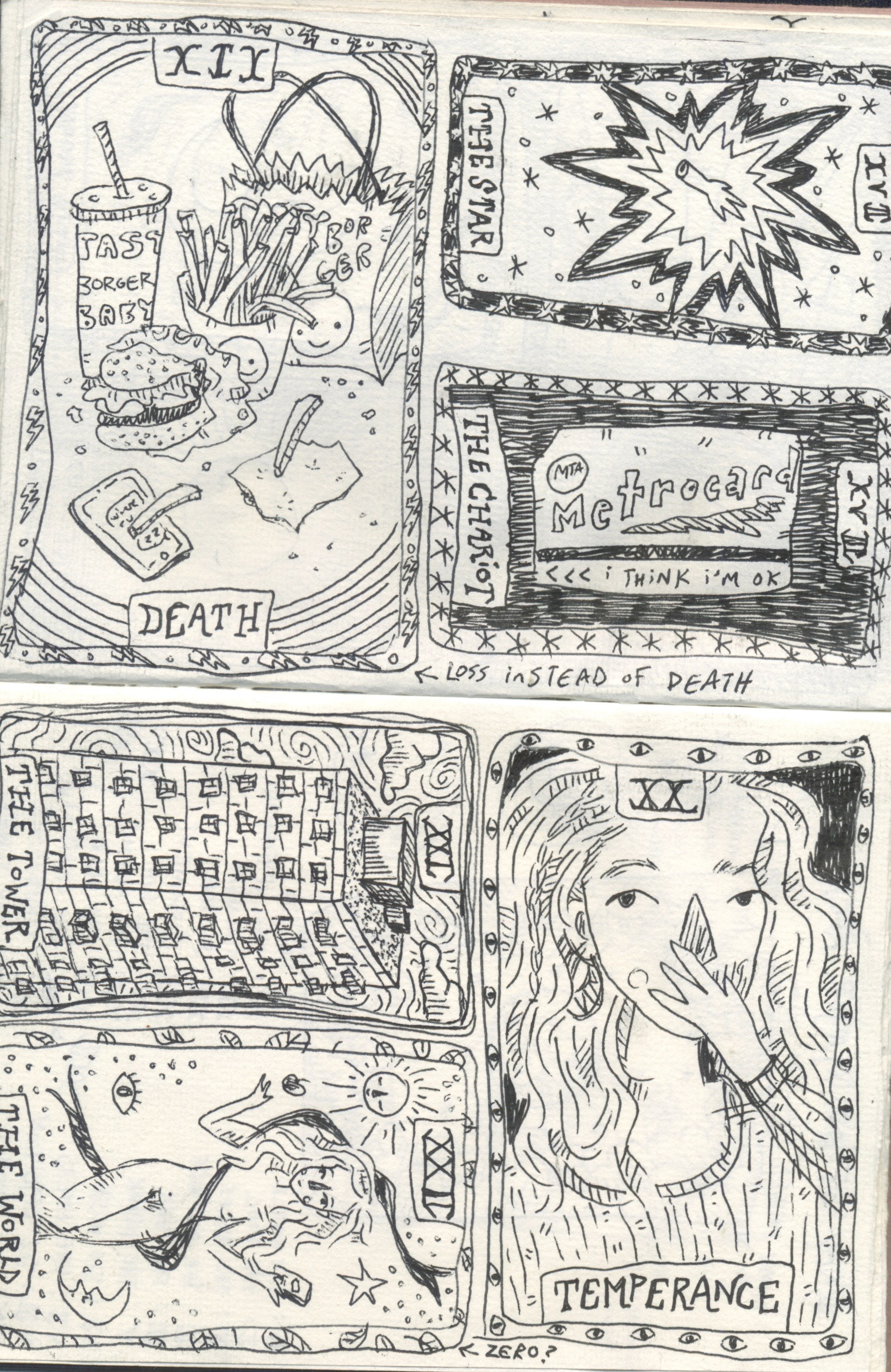 Initially created for my senior thesis, the Healing Tarot grew into something much larger. It is an atypical tarot deck that explores my journey through an eating disorder and navigating self acceptance. I created my own four suits (clouds, daisies, stars and reflection) while combining both traditional tarot imagery and my own illustrations + symbols.